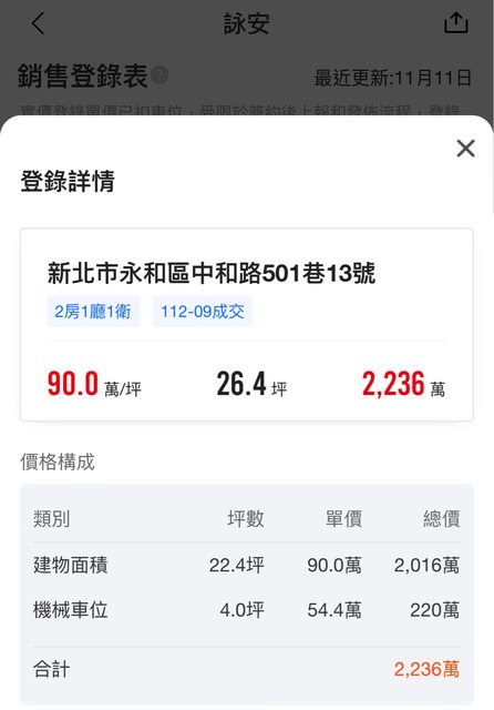 : 距離捷運永安市場步行2分鐘的「詠安」新建案最新9月實價登入破90萬/坪