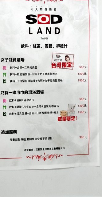 下午後續的時間回到早上就預約的SOD LAND的一條浴巾酒場
