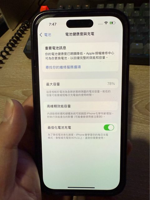 物品狀況:電池78%、正常使用痕跡,手機背面有兩條小小的痕跡