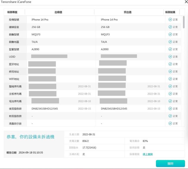 物品狀況:無送修過、無換過電池、前鏡頭無畫面,其餘功能正常、Face ID正常 8成新