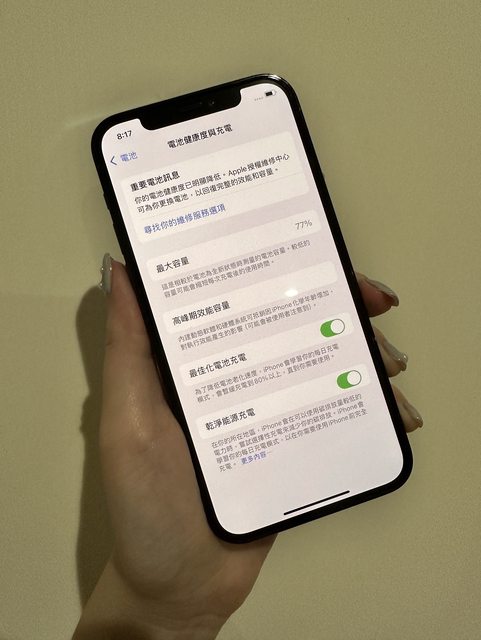 物品狀況:二手,電池健康度77%,手機有貼螢幕保護貼,使用都有保護殼,有正常使用