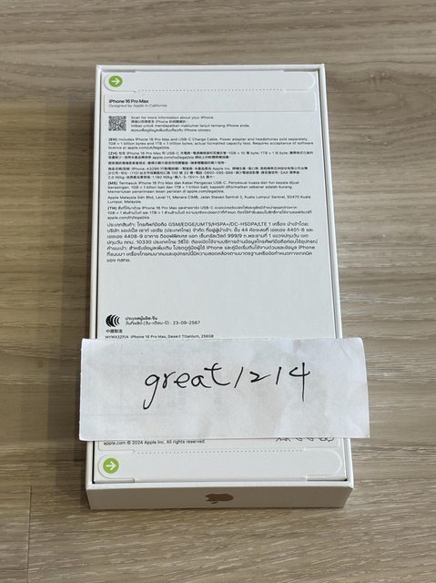 欲售物品:iPhone 16 Pro Max 256g 沙漠金