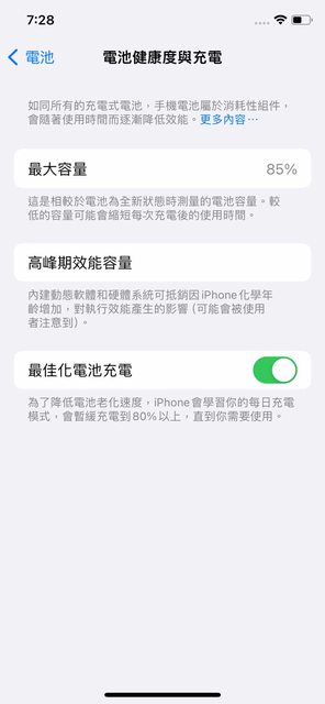 電池健康度 85%