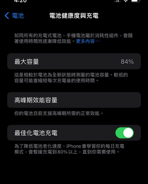 1. 使用無任何故障,無換過電池,健康度84%