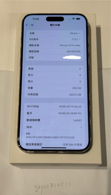 欲售物品:iPhone 15 Pro Max 256G 白色鈦金屬