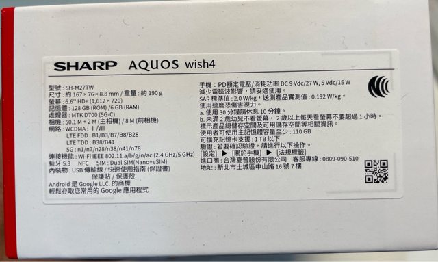 欲售物品:SHARP AQUOS WISH4 藍