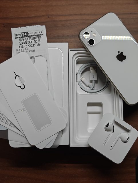 盒裝內含:原廠盒裝、充電線與耳機(皆未使用過)、文件、卡針、