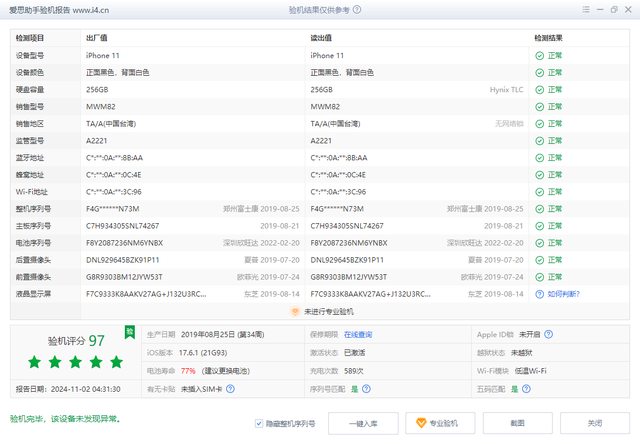 物品狀況:功能正常、僅更換過原廠電池、電池健康度77%