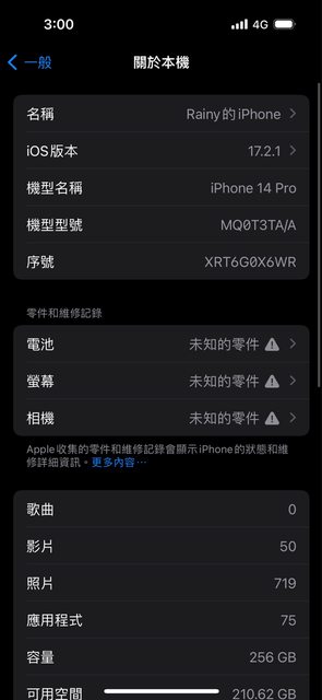 二手-換過主機板 原本是128g ,過保後主機板燒壞 在士林查爾斯更換256g 主機板 最近