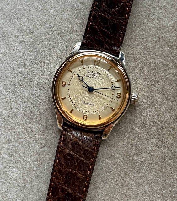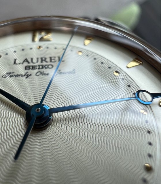 1. Seiko Laurel 4s 手上鍊銀錶殼,925銀錶殼18K錶圈,面盤中心為波紋紋路,搭上藍