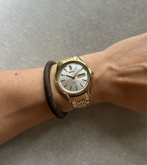 別的是黑金搭配時標和針組,已更換皮錶帶,再附上一條精工老鏈帶,已洗油保養更換鏡