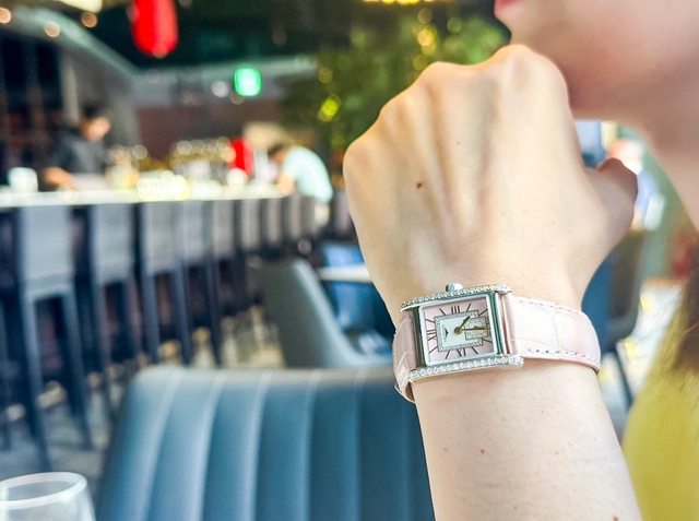 她一直和我討論著手上的這只新手錶,覺得很有優雅高貴的感覺