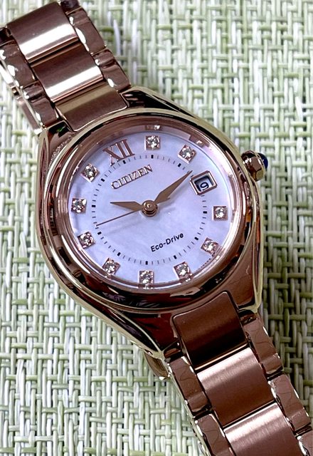 2.CITIZEN-光動能水晶女錶-玫瑰金26mm