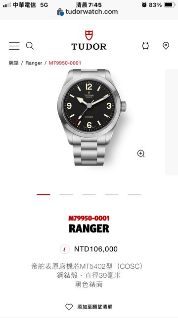標題[賣錶] Tudor ranger M79950 39mm