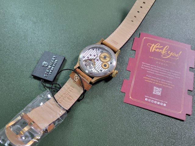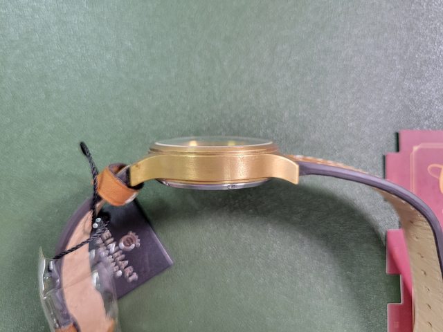 大透背可欣賞機芯作動,銅殼用料充足,隨時間流逝會呈現獨特的色澤。錶殼輕度氧化痕