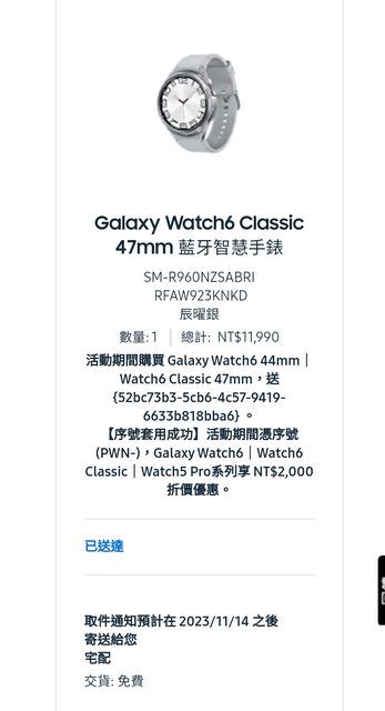 欲售物品:galaxy watch 6 classic 47mm