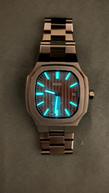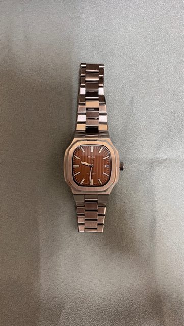熱門鮭魚面,殼型近似鸚鵡螺,一體式錶帶,錶節固定為螺絲插銷形式,錶扣為蝴蝶扣, 並有一立體浮雕LOGO,整體做工精緻,可惜手圍因無法調整剛好配戴的習慣,故出售 *本錶為隆達150機芯版本*