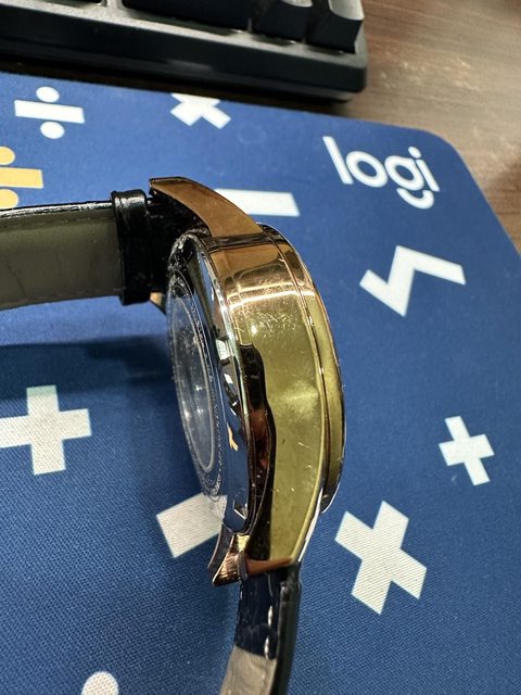 錶背有開蓋劃痕、錶殼左側有一處褪色