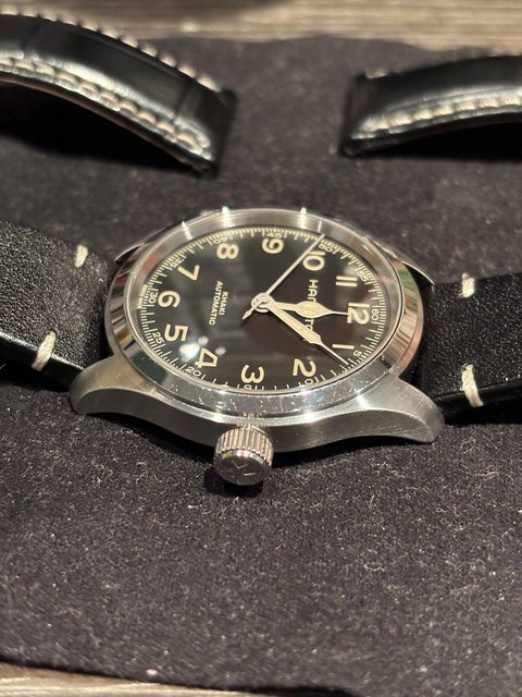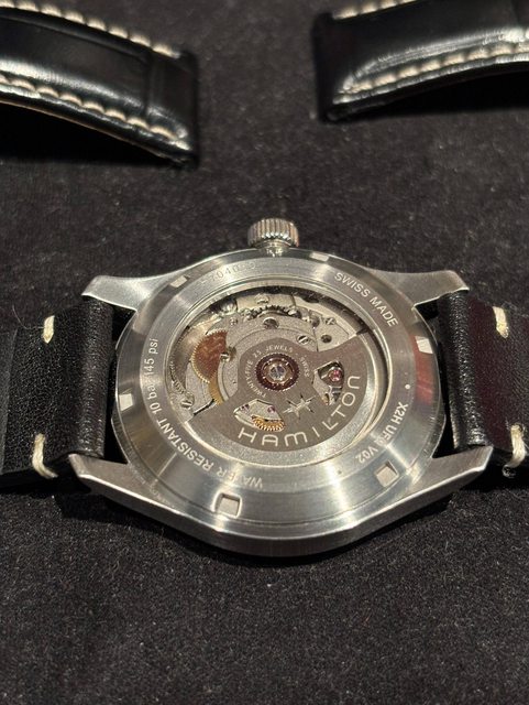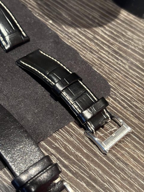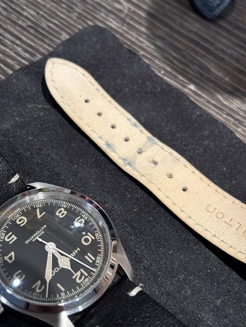 原廠錶帶近全新,惟因遇雨落色,錶帶背側有被渡色。(請參考照片)不影響使用。目前已更換替用黑色錶帶,使用次數十次內。