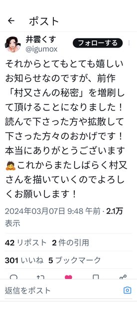 → seventhree83: &上月底又發了篇文說自己實在不適合當商業漫畫家 03/15 13:20