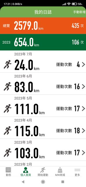 8.雖然跑得不快,但很喜歡慢跑,月跑量100km多一點。