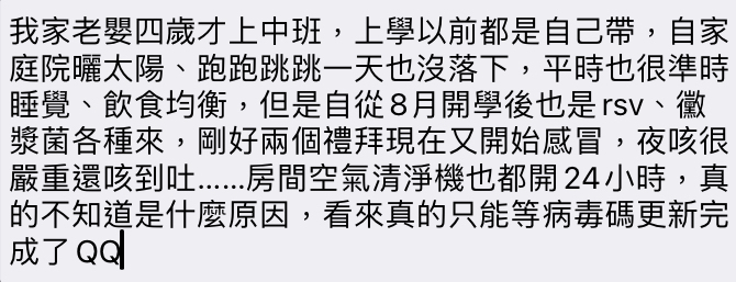 推 catwithptt : 身邊也有人小孩去幼稚園後陷入循環式重感冒治療的, 11/02 00:25