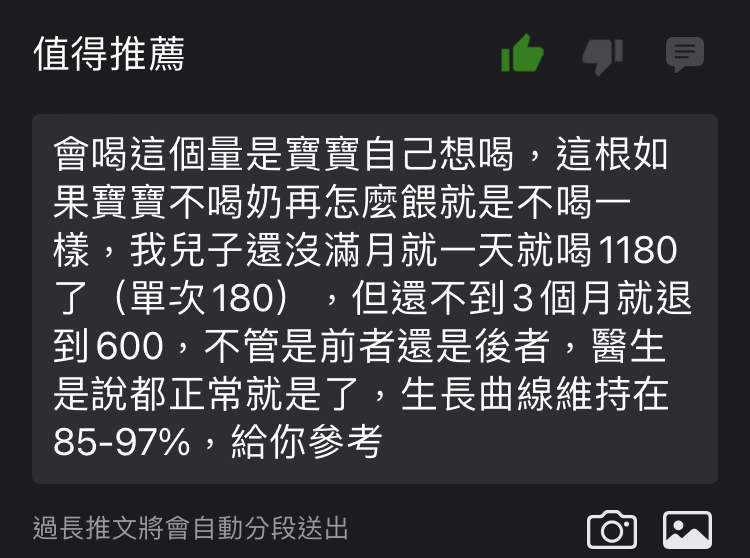 → LilyHsu : 再過一個月就喝到180了,成長曲線都很正常。 11/17 23:33