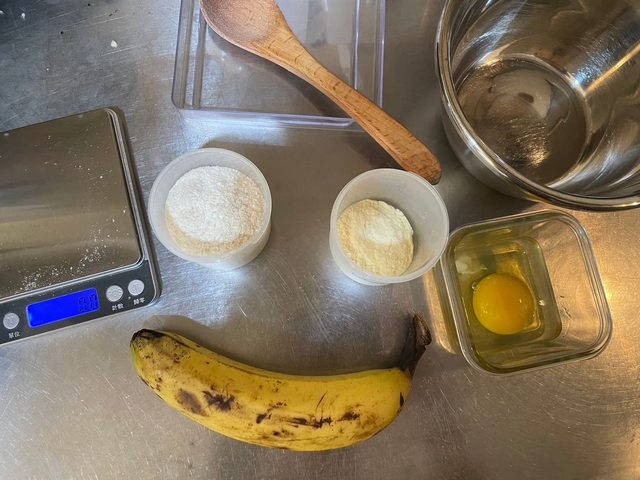 材料:米精20g、奶粉5g、雞蛋1顆、香蕉1/3條