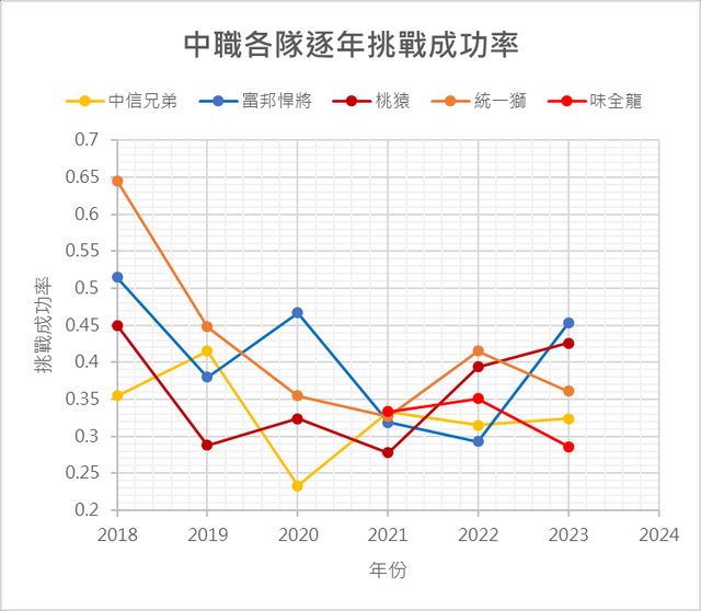 今年各隊的挑戰次數/成功率
