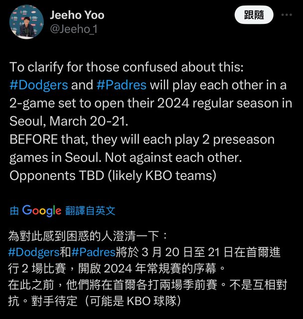 標題[分享] MLB海外賽可能和韓職隊伍打熱身賽