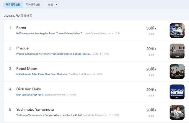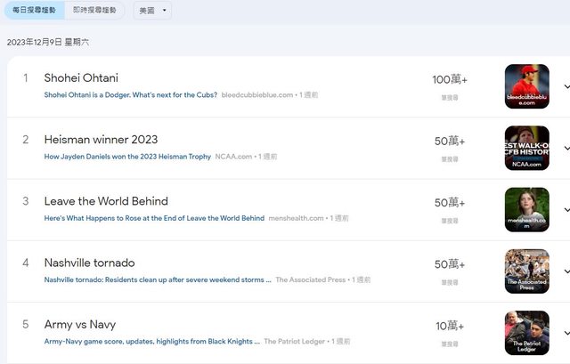 標題[分享] 大谷、山本簽約當天 美國谷歌熱搜前五