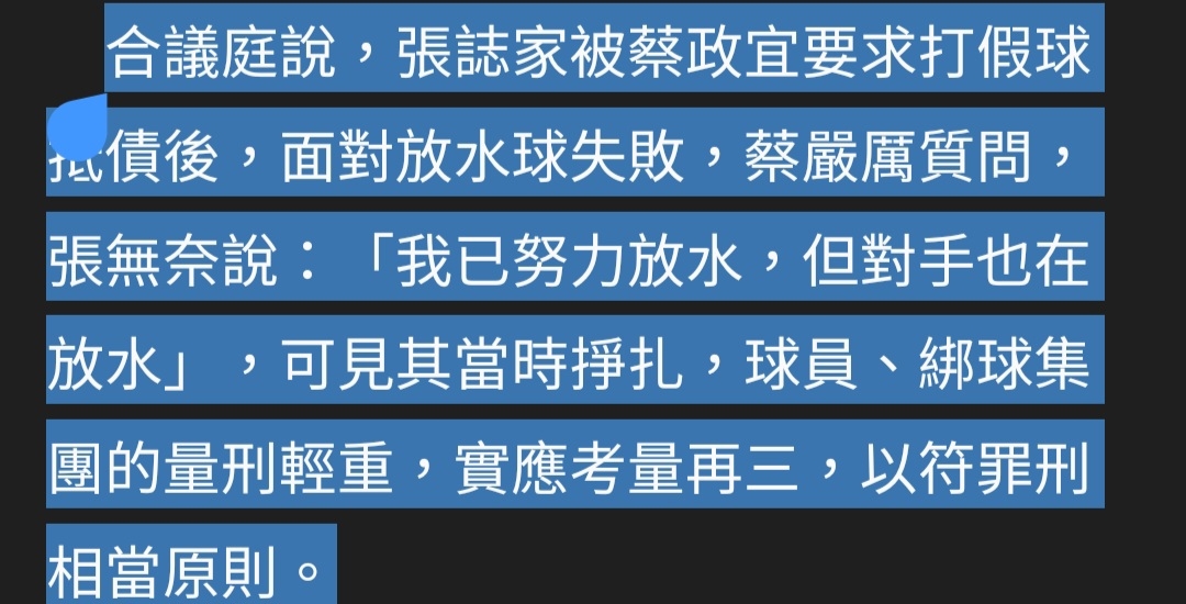 推 shakawang: 法院的說法是認定張要打假球了,但沒成功。猜大概是投 01/02 19:17