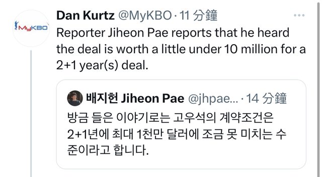 標題[情報] LG其實不滿意高佑錫的合約,但老闆開綠