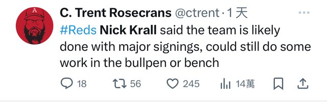 根據一隊的球探表示,他好像收到來自MLB紅人的兩年合約