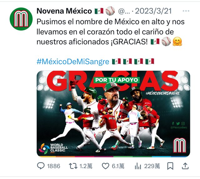 墨聯主席受訪時也提到受惠於WBC打進四強