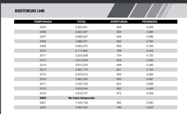 至於2023-2024的墨西哥冬季聯盟例行賽票房