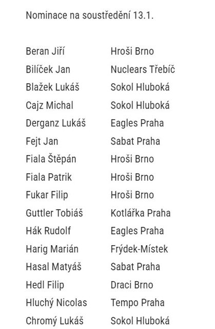 捷克棒協將有一系列的集訓/選拔/比賽