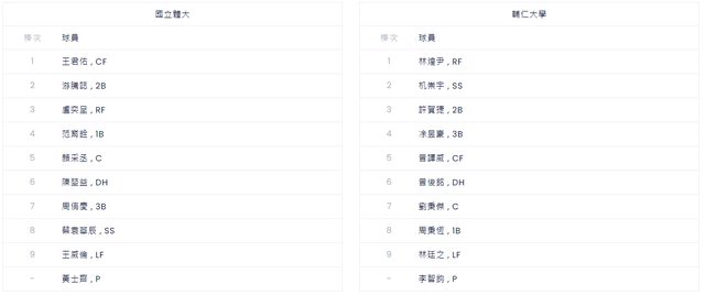 → Fitzwilliam: 先發投手:輔大李智鈞 vs. 國體黃士齊 01/18 14:04