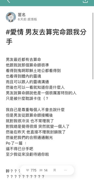 兩個人的感情,自己知道,算命師的話,只是增加原本的想法