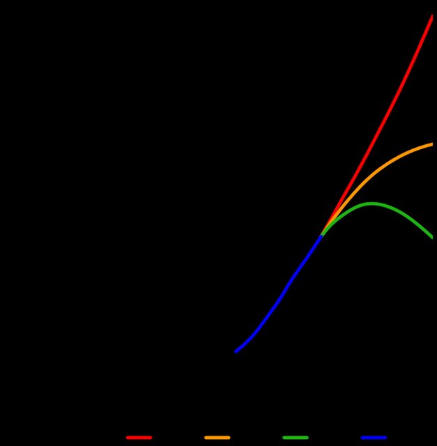 我希望未來人口是綠色那條線,人類減少,