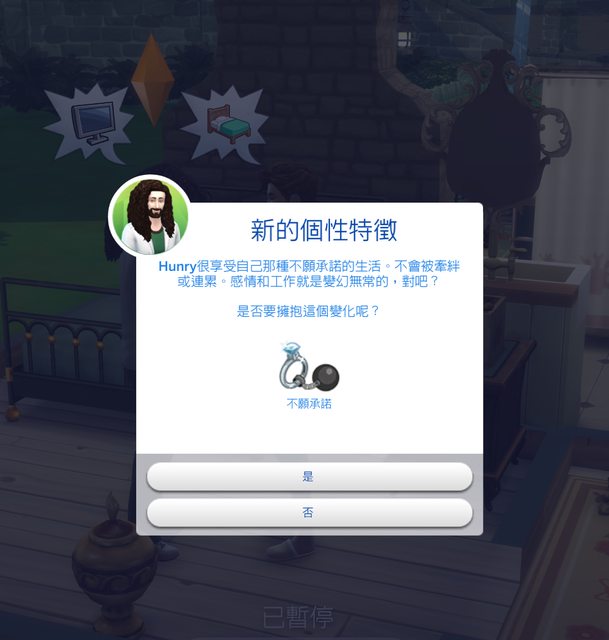復活之後系統馬上讓他跳出這個新的個性特徵: