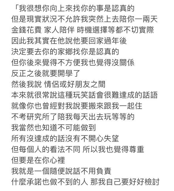 推 fly616327 : 認真回,溝通不要傳訊息要當面講開比較好 02/21 08:16