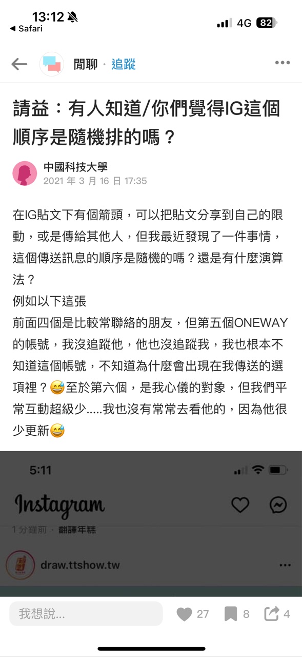 推 stevenklc : 認識的話,應該有互追吧?ig可以到粉絲那看最少互動 06/18 23:04