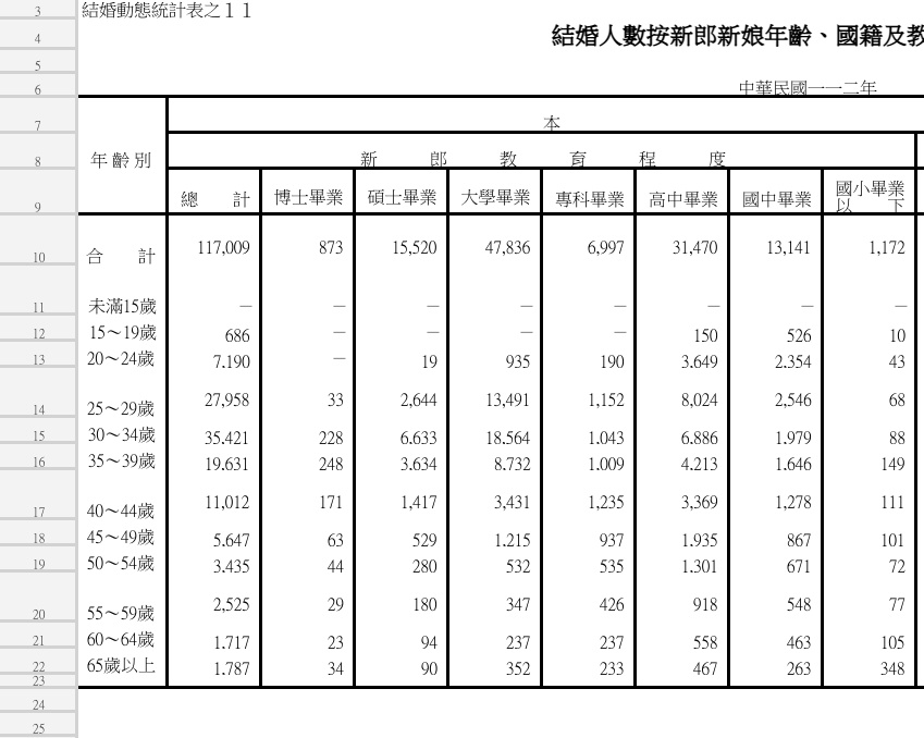 推 sleepbear15 : 我比較好奇為什麼統計表中新郎和新娘數值差異這麼大 06/28 12:03
