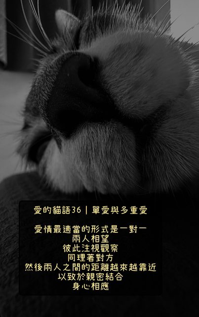 「愛的貓語」是根據心理師近30年的觀察、實務經驗及愛情心理學的研究成果,發展而成的短文,我認為,如果能從01貓語,細細思量貓語,有這個認知及行為,往向順利和諧的戀人乃至於可能未來婚姻之幸福不遠矣!