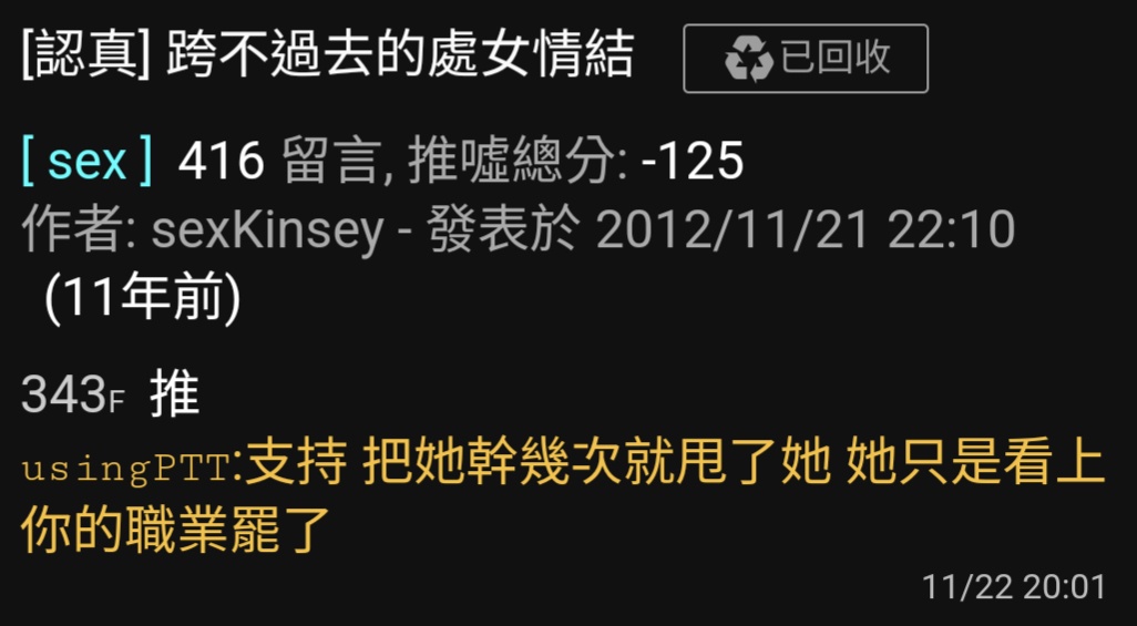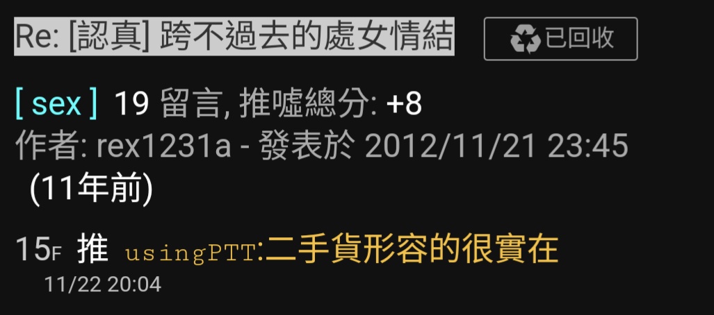 → doS16 : 然後會找你當接盤俠的女生通常也不宅,這跟年齡無關 07/07 13:34