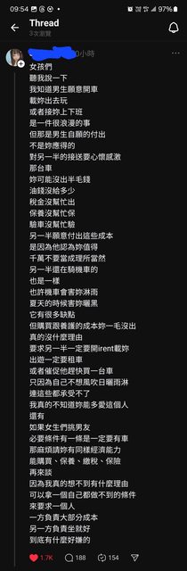 推 kevinmade : 樓上那個很正常吧 如果跟男生交往也AA坐機車 那就 07/31 12:44