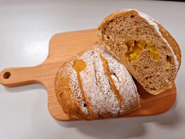 這次小七新推出了兩款健康取向的麵包 首先是這個「地瓜高纖軟歐」