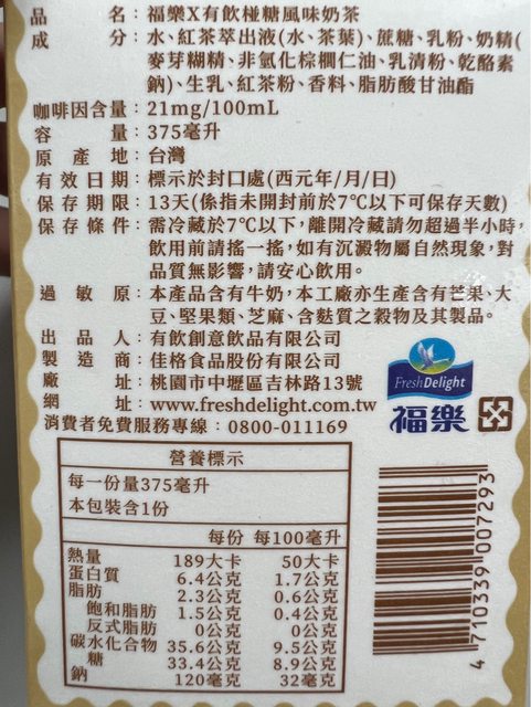 【商品名稱/價格】:有飲 椪糖奶茶/35元