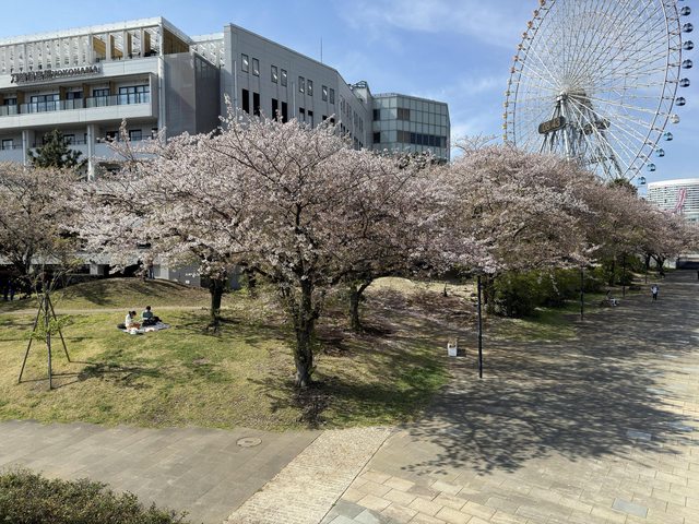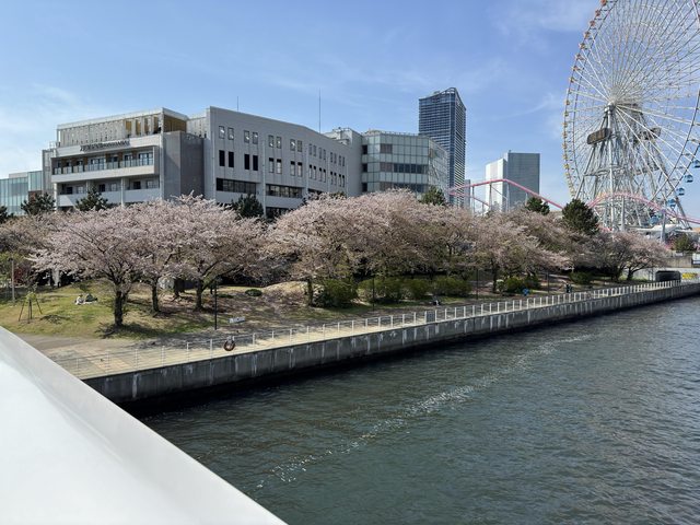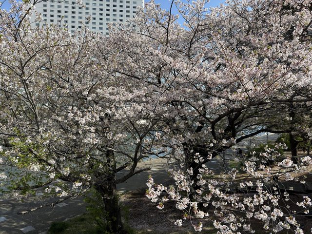 沿著 国立大ホール 後面的女神橋走 中間有看到櫻花 挺幸運的